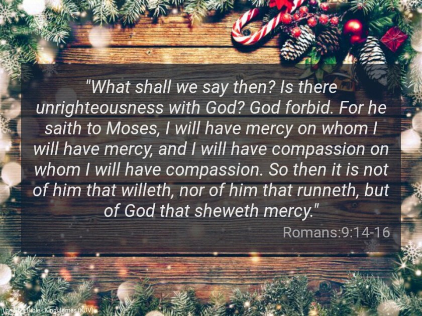 For he saith to Moses, I will have mercy on whom I will have mercy, and I will have compassion on whom I will have compassion. So then it is not of him that willeth, nor of him that runneth, but of God that sheweth mercy” (Romans 9:15).