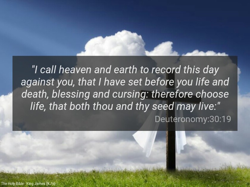 “I call heaven and earth to record this day against you, that I have set before you life and death, blessing and cursing: therefore choose life, that both thou and thy seed may live” ( Deuteronomy 30:19).