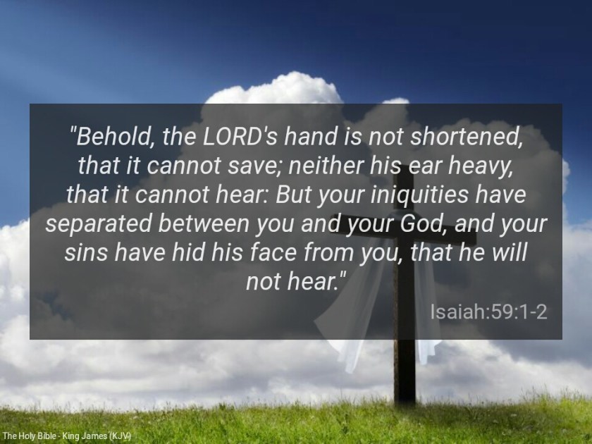 “Behold, the LORD’s hand is not shortened, that it cannot save; neither his ear heavy, that it cannot hear: But your iniquities have separated between you and your God, and your sins have hid his face from you, that he will not hear” ( Isaiah 59:1-2).