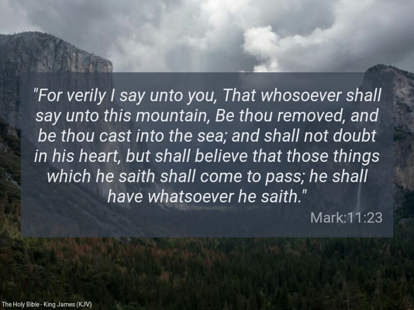 “For verily I say unto you, That whosoever shall say unto this mountain, Be thou removed, and be thou cast into the sea; and shall not doubt in his heart, but shall believe that those things which he saith shall come to pass; he shall have whatsoever he saith” ( Mark 11:23).
