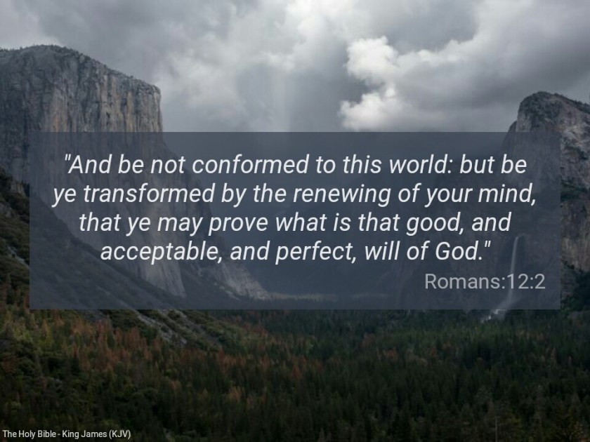 “And be not conformed to this world: but be ye transformed by the renewing of your mind, that ye may prove what is that good, and acceptable, and perfect, will of God” (Romans 12:2).
