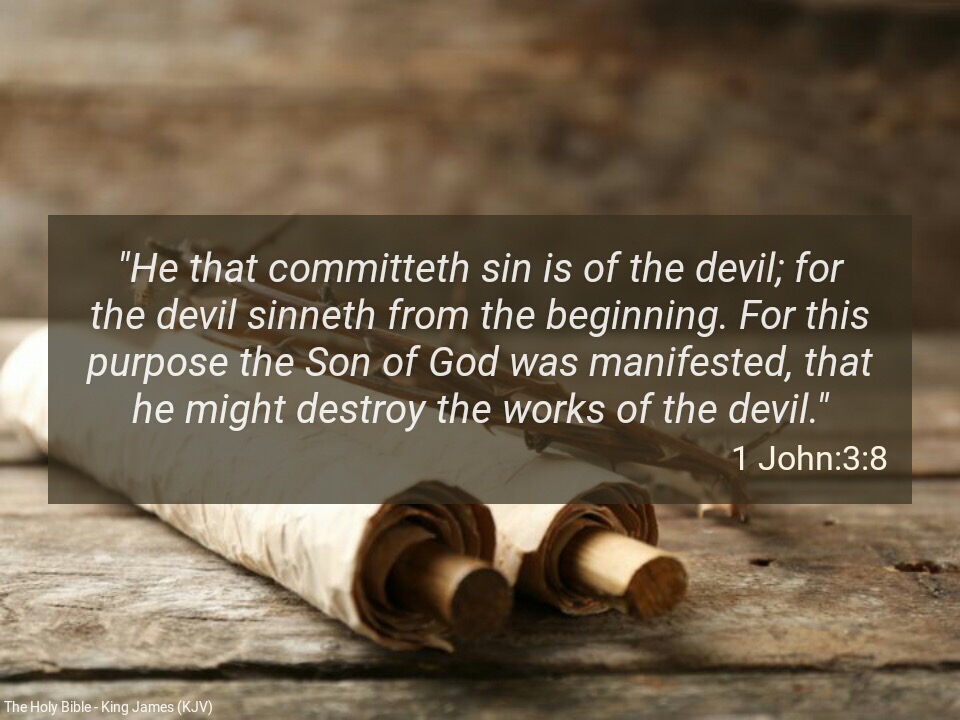 “He that committeth sin is of the devil; for the devil sinneth from the beginning. For this purpose the Son of God was manifested, that he might destroy the works of the devil” (1John 3:8)