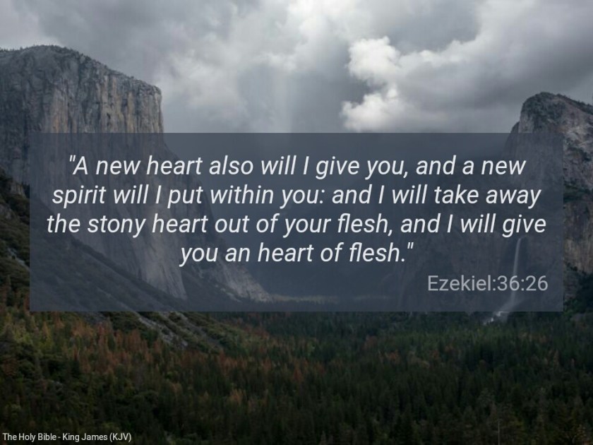“A new heart also will I give you, and a new spirit will I put within you: and I will take away the stony heart out of your flesh, and I will give you an heart of flesh” (Ezekiel 36:26).