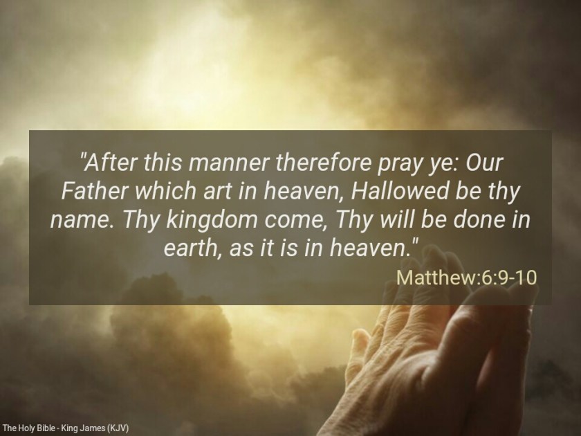 “After this manner therefore pray ye: Our Father which art in heaven, Hallowed be thy name. Thy kingdom come. Thy will be done in earth, as it is in heaven” ( Matthew 6:9-10)
