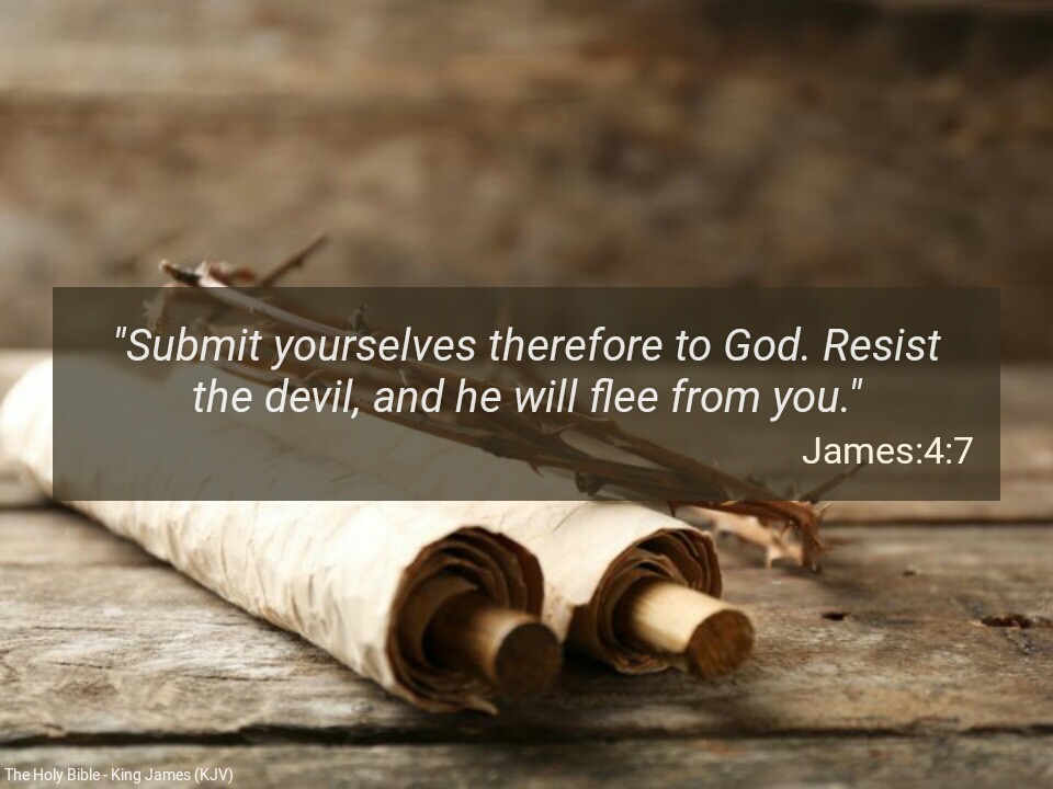 “Submit yourselves therefore to God. Resist the devil, and he will flee from you” (James 4:7).