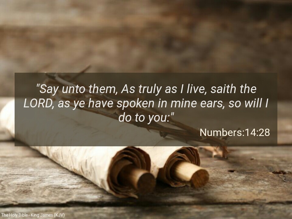 “Say unto them, As truly as I live, saith the LORD, as ye have spoken in mine ears, so will I do to you” (Numbers 14:28)