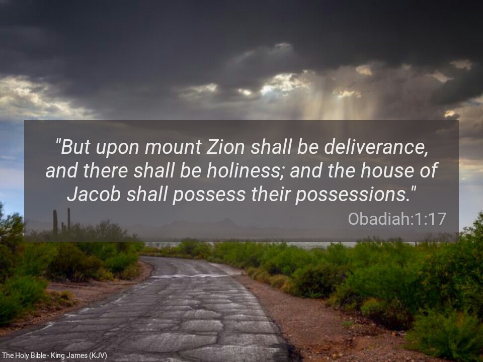 “But upon mount Zion shall be deliverance, and there shall be holiness; and the house of Jacob shall possess their possessions” ( Obadiah 1:17).