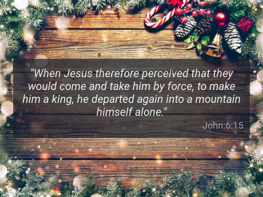 “When Jesus therefore perceived that they would come and take him by force, to make him a king, he departed again into a mountain himself alone” (John 6:15)