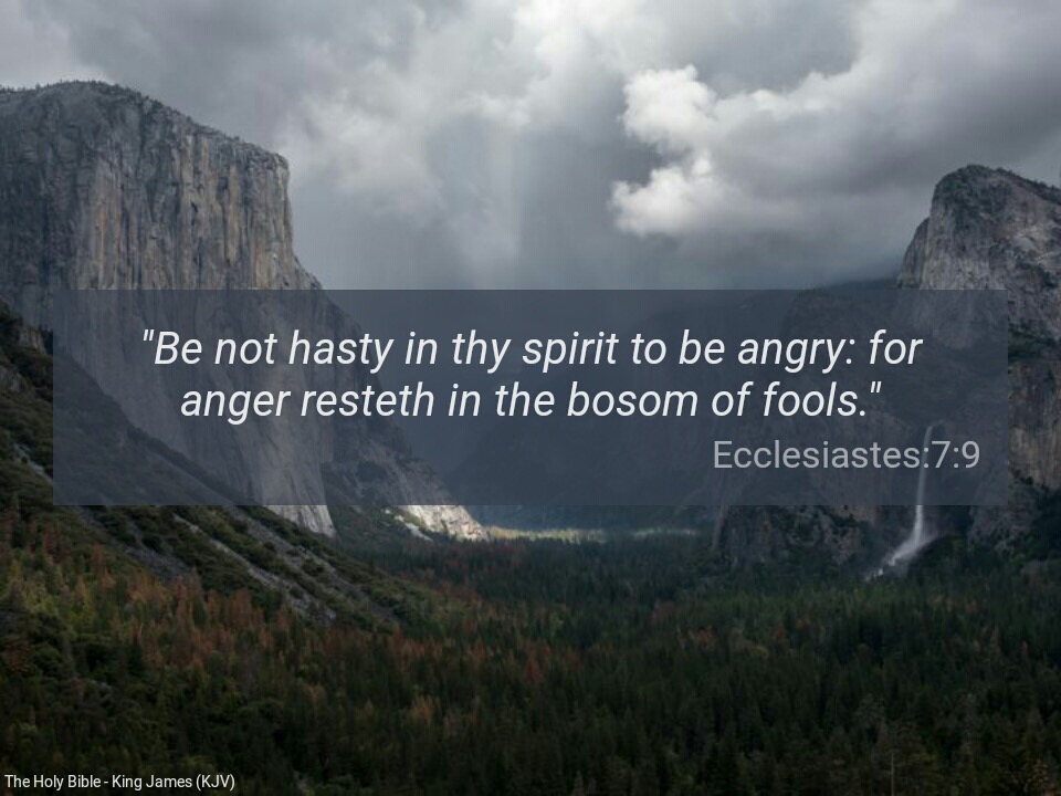 “Be not hasty in thy spirit to be angry: for anger resteth in the bosom of fools” ( Ecclesiastes 7:9)