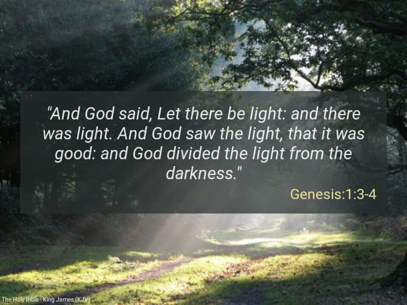 “And God said, Let there be light: and there was light. And God saw the light, that it was good: and God divided the light from the darkness”( Genesis 1:3-4).