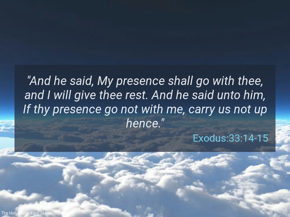 “And he said, My presence shall go with thee, and I will give thee rest. And he said unto him, If thy presence go not with me, carry us not up hence” (Exodus 33:14-15).