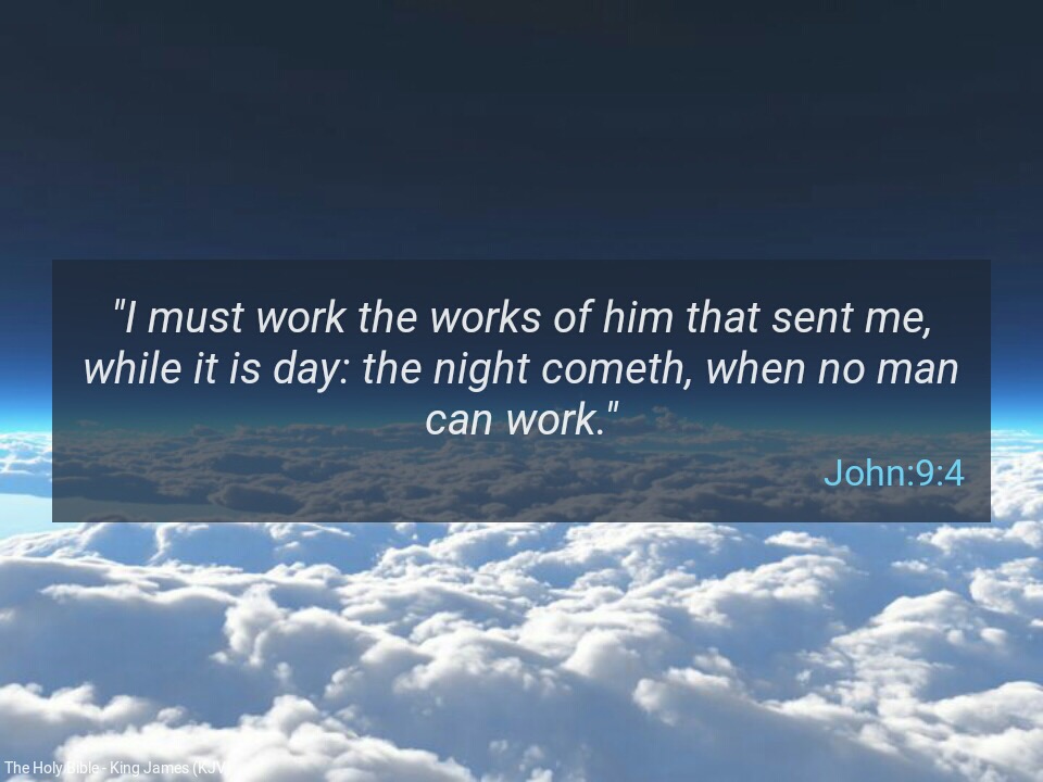 “I must work the works of him that sent me, while it is day: the night cometh, when no man can work” ( John 9:4)