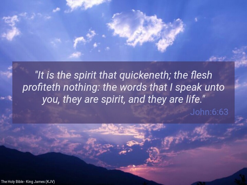 “It is the spirit that quickeneth; the flesh profiteth nothing: the words that I speak unto you, they are spirit, and they are life” (John 6:63).