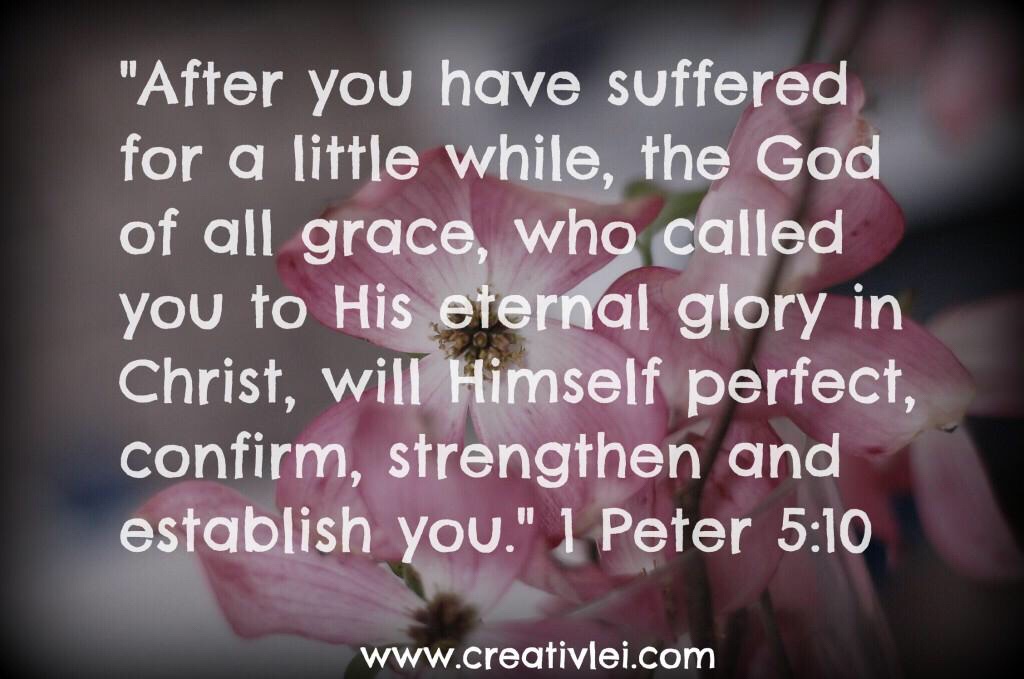“But the God of all grace, who hath called us unto his eternal glory by Christ Jesus, after that ye have suffered a while, make you perfect, stablish, strengthen, settle you” (1Peter 5:10). Amen