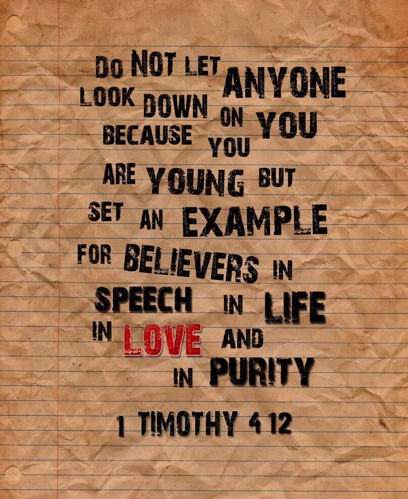 “Let no man despise thy youth; but be thou an example of the believers, in word, in conversation, in charity, in spirit, in faith, in purity”( 1Tim 4:12)