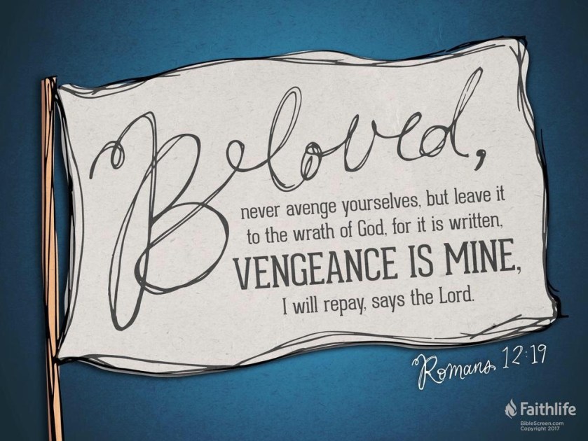 “Dearly beloved, avenge not yourselves, but rather give place unto wrath: for it is written, Vengeance is mine; I will repay, saith the Lord” (Romans 12:19).