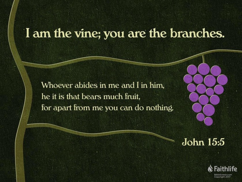 “I am the vine, ye are the branches: He that abideth in me, and I in him, the same bringeth forth much fruit: for without me ye can do nothing”(John 15:5).