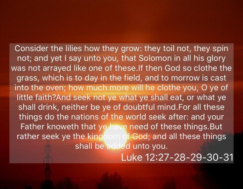 Seek ye first the kingdom of God…Luke 12:31. Grace and peace be multiplied to you (2Peter 1:2). Amen.