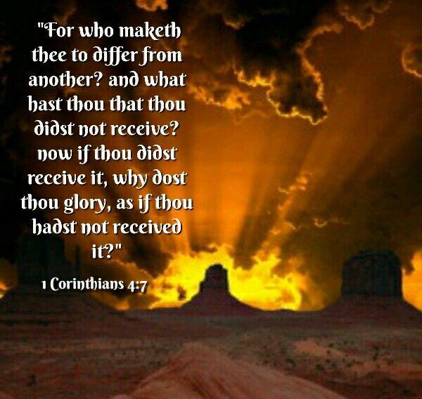 “For who maketh thee to differ from another? and what hast thou that thou didst not receive? now if thou didst receive it, why dost thou glory, as if thou hadst not received it?” (1Corinthians 4:7).