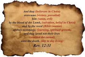 “And they overcame him by the blood of the Lamb, and by the word of their testimony; and they loved not their lives unto the death”(Rev 12:11).