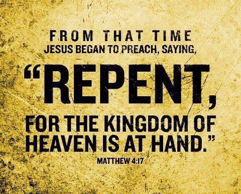 ” …Repent for the kingdom of heaven is at hand” (Matthew 4:17)