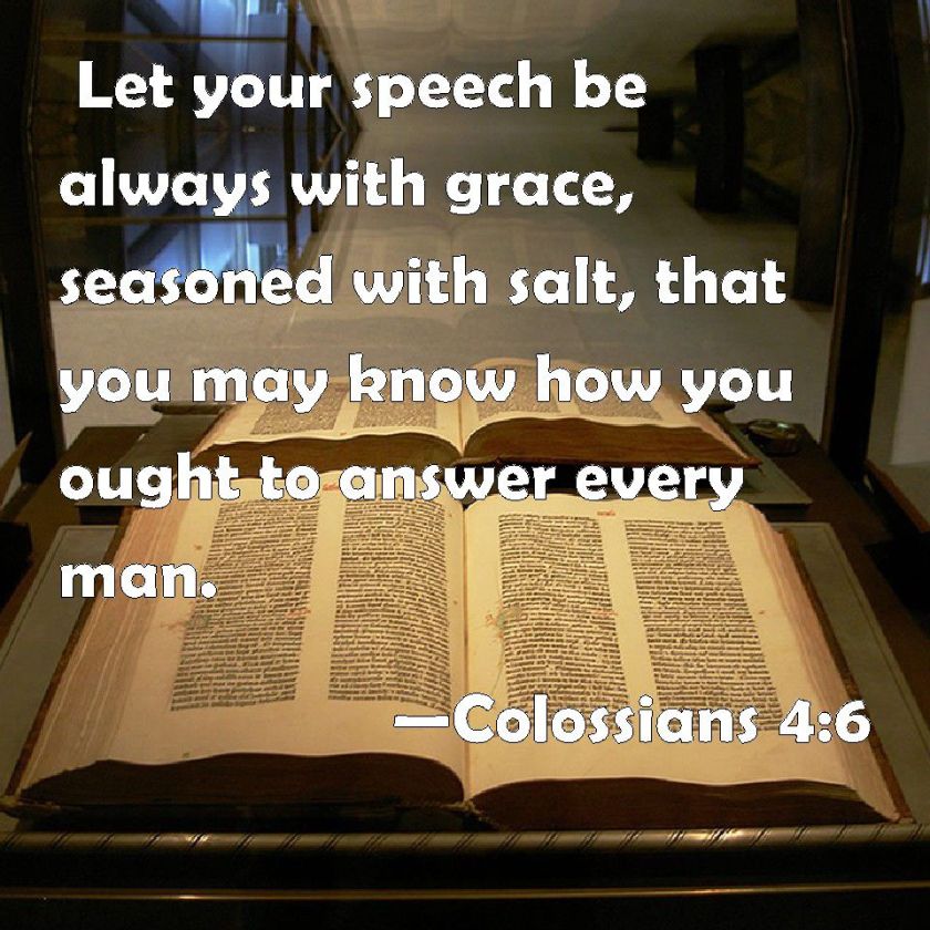 “Let your speech be alway with grace, seasoned with salt, that ye may know how ye ought to answer every man”(Colossians 4:6).